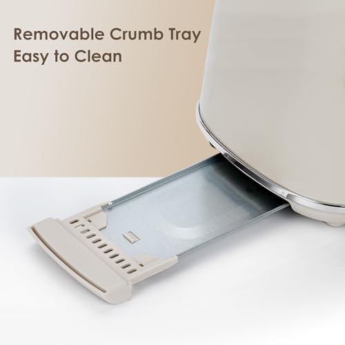Roter Mond Torradeira Retrô De Aço Inoxidável Com 4 Fatias, Função Bagel, Cancelar, Descongelar E 6 Configurações Tom Pão, Ranhuras Longas Extra Largas, Bandeja Migalhas Removível, Creme