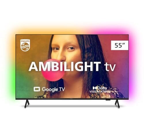 Smart TV Philips Ambilight 55″ 4K 55PUG7908/78, Google TV, Comando de Voz, Dolby Vision/Atmos, VRR/ALLM, Bluetooth