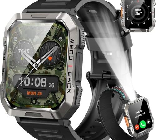 • 👍【Durabilidade de nível militar e design requintado】A estrutura do relógio inteligente militar para homens é feita de material especial de liga de alumínio, o que aumenta sua forte durabilidade e resistência a quedas. incluindo temperaturas extremas, baixa pressão, resistência a poeira e quedas, e pode lidar facilmente com condições ambientais adversas, tornando-o um companheiro perfeito para aventuras ao ar livre.