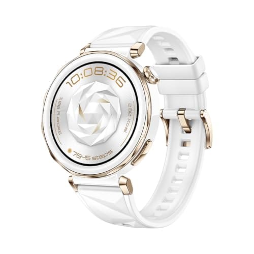• [ Fabricado com Materiais Premium ] : O corpo de cerâmica nanocristalina e a pulseira de fluoroelastômero texturizado branco como a neve são o encontro do esportivo com o elegante. A tela de vidro de safira expressa o luxo do design de platina. A moldura e coroa são polidos com perfeição com facetas de folhas douradas.