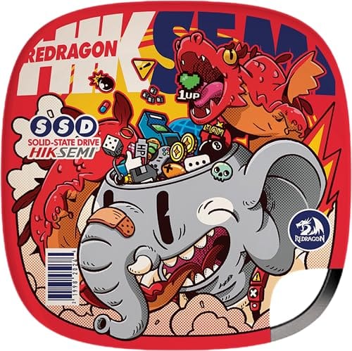 SSD feito em parceria entre a Redragon e a Hiksemi • Arte exclusiva selecionada da comunidade comemorando a cultura gamer • Tamanho compacto e de pequena espessura ideal para transferências do dia a dia