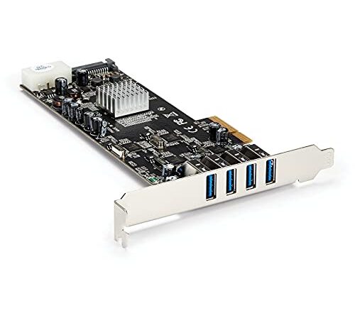 StarTech.com Cartão PCIe USB 3.0 de 4 portas com 4 canais dedicados de 5 Gbps (USB 3.2 Gen 1) – UASP – SATA / LP4 Power – Placa adaptador PCI Express (PEXUSB3S44V)