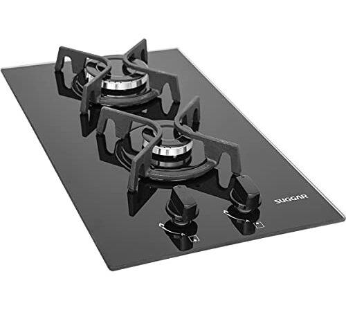 SUGGAR COOKTOP VIDRO PRETO 2 QUEIMADORES ESMALTADOS DIFERENTES TAMANHOS TREMPES FERRO FUNDIDO FG2002FVP