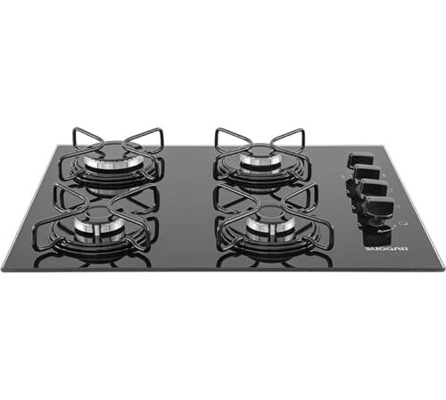 SUGGAR COOKTOP VIDRO PRETO 4 QUEIMADORES ESMALTADOS DIFERENTES TAMANHOS FG4004AVP