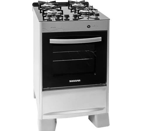 SUGGAR FOGÃO NEO GLASS PRATA MESA DE VIDRO 4 BOCAS TREMPE 6 APOIOS ACENDIMENTO AUTOMÁTICO FGVNG410PRIX