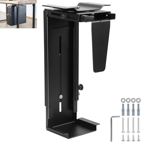 Suporte para Gabinete CPU Suspenso Naoman, Suporte Gabinete, Altura Ajustável Entre 29 e 52 cm, Capacidade de Carga de 10 Kg, Adequado para a Lateral da Mesa/Base da Mesa/Parede, Preto, Aço, Torre
