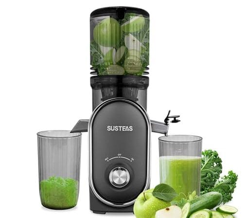 SUSTEAS Espremedor A Frio, Rampa De Alimentação De 5,3″ (Capacidade De 50 Oz), Extrator De Suco De Mastigação Lenta De 300 Watts Para Frutas E Vegetais Inteiros, Alimentação Automática, Fácil De Li