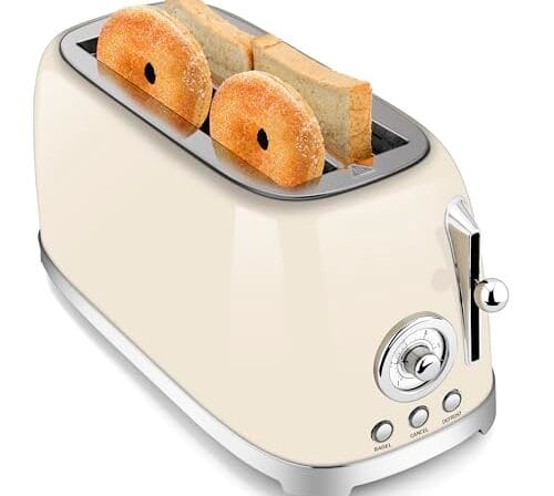SUSTEAS Torradeira 4 Fatias De Fenda Larga, Tostadeiras De Pão De Aço Inoxidável Para Bagel, Tostadora Retro De Fenda Longa Para Descongelar, Reaquecer, Bandeja De Migalhas Removível, 1500 W, 6 Ajus