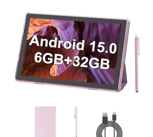 Tablet Android 15 de 10 polegadas com capa e caneta, 6 GB de RAM, 32 GB de ROM, suporta expansão de 1024 GB, tablet Android, bateria de 6000 mAh, tela sensível ao toque IPS HD de 10,1 polegadas, WiFi