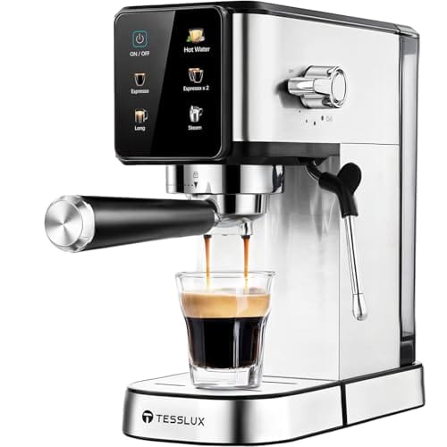 tesslux Máquina de café expresso de 20 bares, caldeira dupla espresso com varinha a vapor batedor de leite, máquina de café compacta para casa, controlo tátil, cappuccino e cafeteira com leite