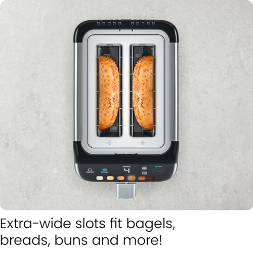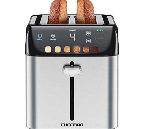 Torradeira digital Chefman Smart Touch de 2 fatias, 6 configurações de sombra, torradeira de aço inoxidável para 2 fatias com compartimentos extra largos, torradeira de pão grosso e torradeira para ba