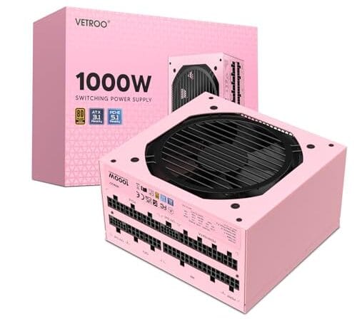 Vetroo Fonte de alimentação rosa 1000W ATX 3.0 Ready Dual PCIe 5.0, 80 Plus Gold Full Modular, capacitores japoneses de 105 °C, modo ecológico com ventilador FDB de 120 mm, tamanho compacto, serviço