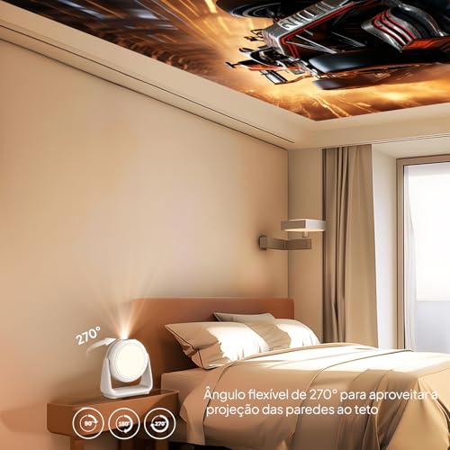 VEVSHAO A10 1080p Full HD Autofoco Android 11.0 5G WiFi BT 5.2 Projetor Inteligente Projetor Rotativo 270° Pode Ser Usado Como Luz Noturna
