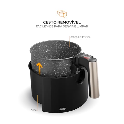 WAP Fritadeira Elétrica Air Fryer GRAND FAMILY 5 Litros, Temperatura Ajustável, Revestimento Antiaderente, 1500W 220V