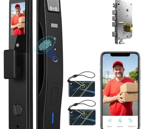 Zenkon Fechadura Eletronica com Reconhecimento Facial 3D, Fechadura Digital com Camera e Wi-Fi Integrado, Fechadura Inteligente com Fechadura Biometrica, com Cilindro de Fechaduras